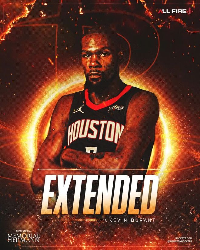 突发的一条消息据NBA记者Shams透露杜兰特在今天对外宣布与火箭达成了一份2年9000万的续约合同