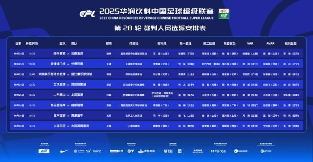 中超官方公布第28轮裁判选派安排。乌兹别克斯坦裁判员伊尔吉兹·坦塔舍夫将执法山东泰山VS上海海港。马宁执法北京国安VS青岛海牛。