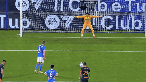 第30分钟,迪洛伦佐突入禁区倒地,裁判认定阿切尔比犯规,判罚点球。