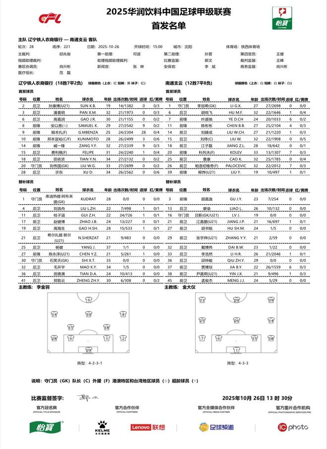 10月26日下午,在2025赛季中甲联赛第28轮也就是倒数第3轮的一场焦点对决中,辽宁铁人凭借邦本宜裕的进球,以1-0击败南通支云,提前2轮锁定中甲冠军,并完成冲超目标。至此,辽宁足球在经过8年漫长等待之后,终于可以重返中超联赛。
