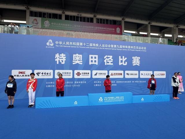 在全国第十二届残疾人运动会暨第九届特殊奥林匹克运动会位于广东中山的田径(特奥)项目赛场,记者发现颁奖仪式上,领奖台几乎都有些站不下了。除了获得奖牌的选手,同组竞赛的未得奖运动员也站上领奖台并获得一条绶带。